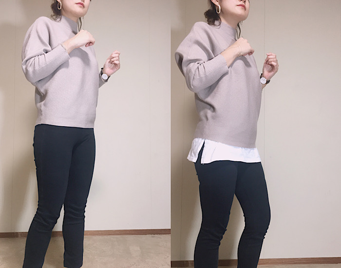 そんなときは、ニットの裾を内側に織り込んでみるのも手。