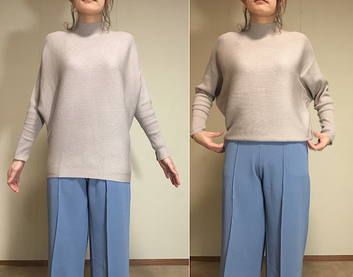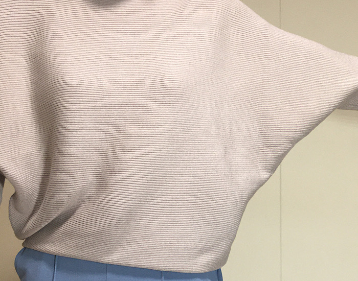 今っぽいボトルネックですが、肌の弱いわたしは首元がちょっとチクチクします。