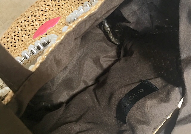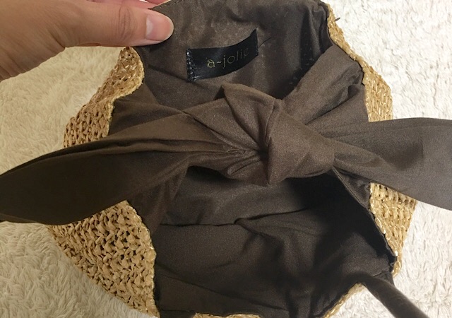 ちなみに裏地は落ち着いたブラウンカラーで、アジョリーのロゴが付いています↓