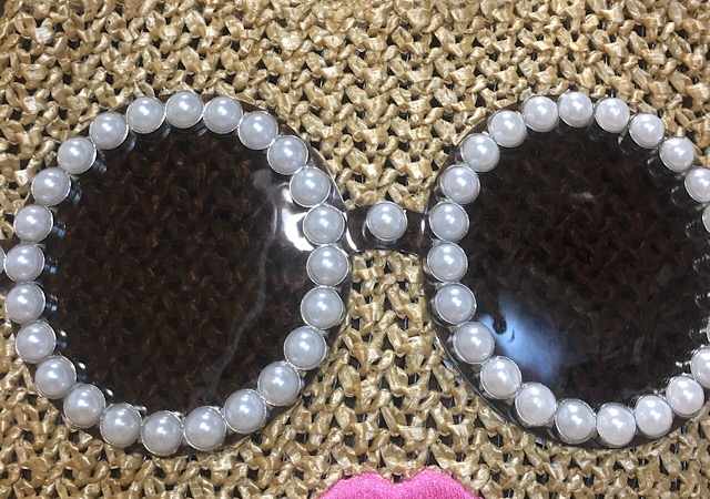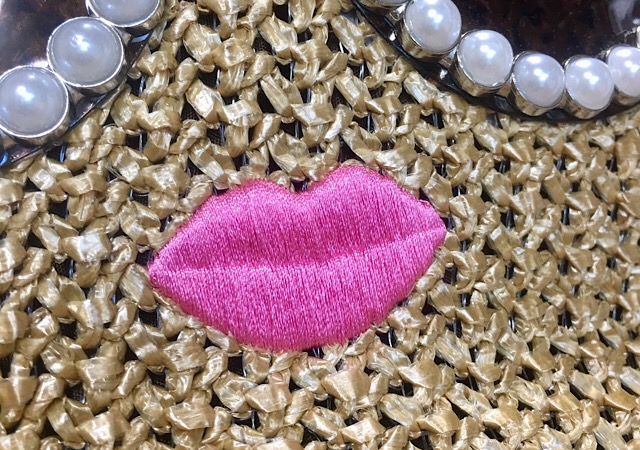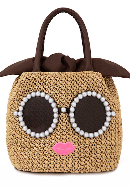 流行のかご風生地に刺しゅうでできたくちびる、さらにスケルトンのサングラスのまわりにはパールをあしらった、超キュートなアジョリーちゃんが誕生しました!