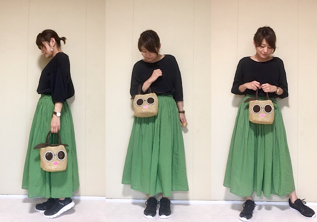 デザイン性の強いバッグですが、インパクトのあるカラースカートと合わせてもケンカしませんでした。
