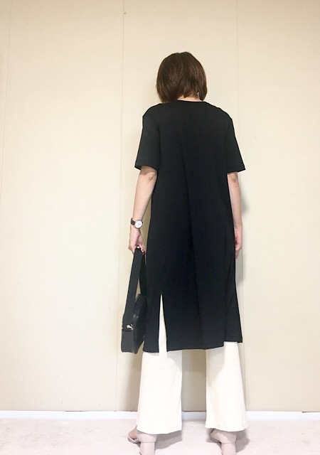 縦線をつくるIラインワンピースは、Tシャツを重ねたカジュアルな組み合わせをキレイめに寄せてくれる頼れる一着!