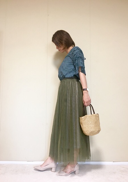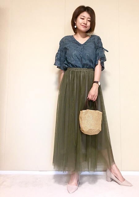 透け素材のチュールスカートなら、ロング丈でも軽やかに見えて大人の夏にピッタリ♪