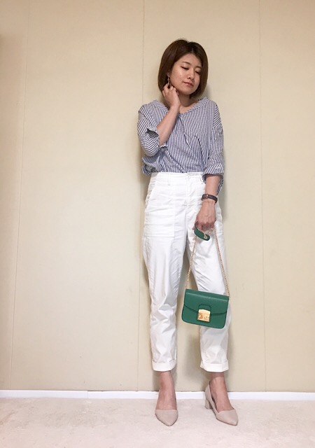 腰から下は白で繋げて、モノトーンでも爽やかな見た目へとシフト♪
