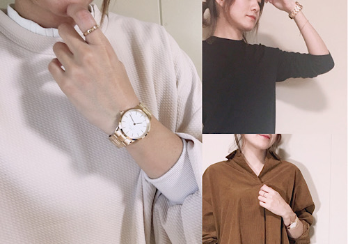 わたしが選んだローズゴールドのエレガントな艶感は、パッと見「派手になり過ぎるのでは?」と不安になりますが、日常着にはむしろ好都合!