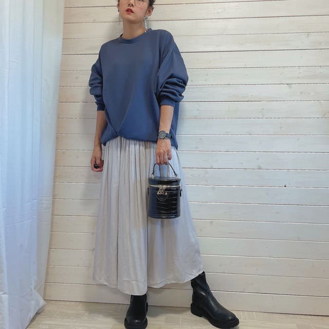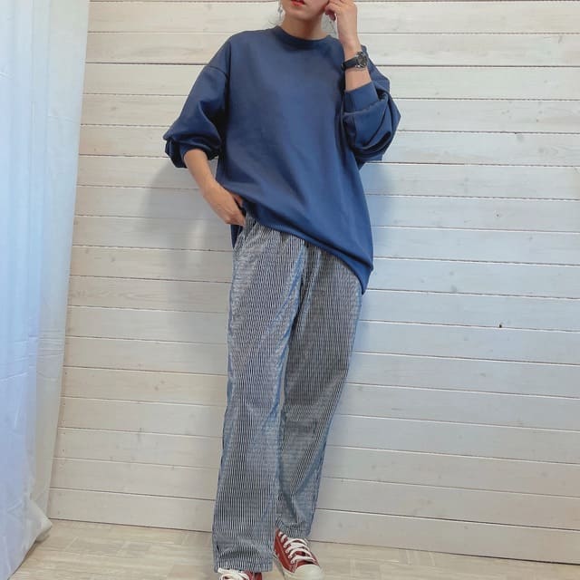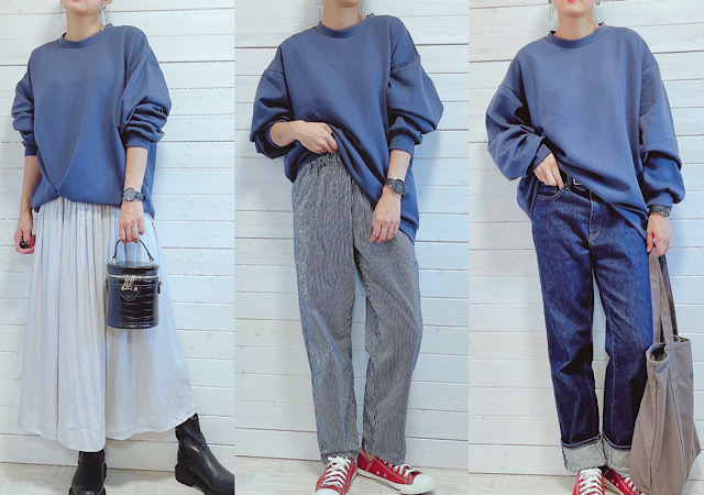 パンツと合わせたいときは、スウェットのカラーと同色を選ぶのがおすすめ!