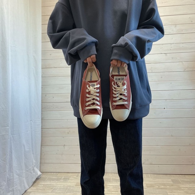 靴はくすんだ赤のコンバースで彩りを添えて↓