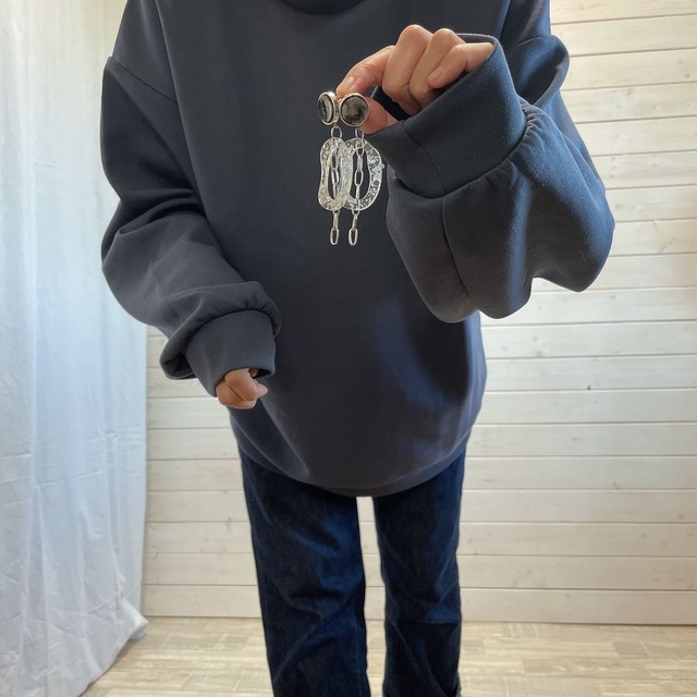 ハンドメイド作家さんから購入した、お気に入りの大ぶりピアスで小顔見せを狙って↓