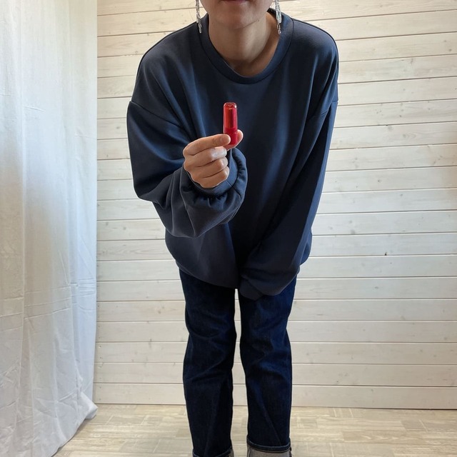 マスクで見えないけど、赤リップで血色アップさせて↓