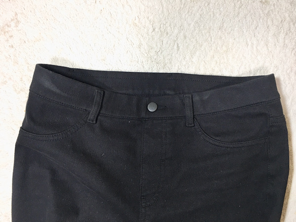 【特徴その1】薄いゴムだからウエストまわりはシャープ。ボタン付きでパンツ感はしっかりある↓