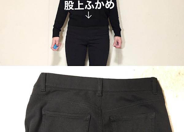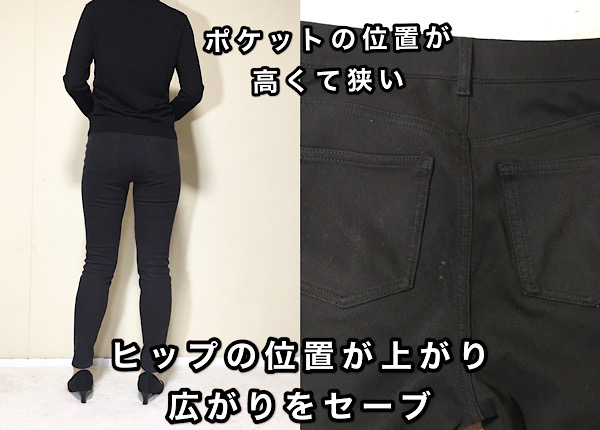 【特徴その3】後ろポケットの位置が高く内側に設置されているから、ヒップの位置が高く見える↓