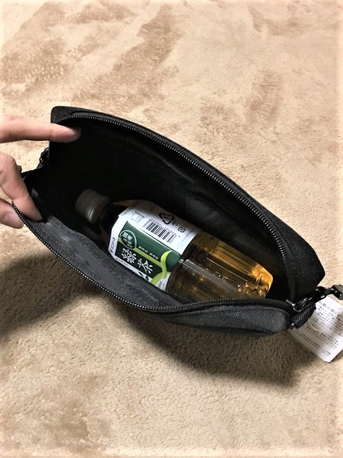 ▼薄っぺらく感じますが、実は500ml ペットボトルがすっぽりはいります。
