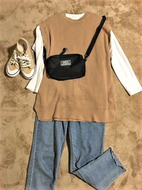 ニットベスト・・・GU < レビューはこちら >