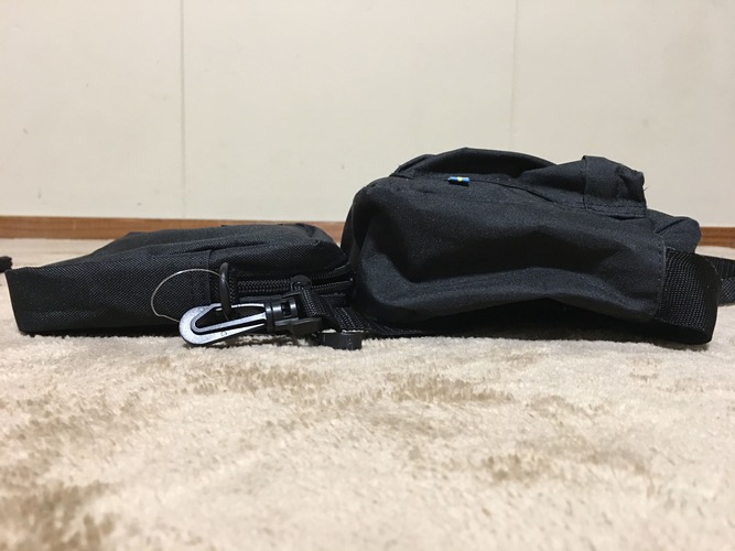 ▼mozは前面にポケットがあるので、さらに厚みが増します。