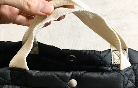 ショルダーの他に持ち手も付いているから、ショッピングカートにさっとかけたりと、小さなお子さん連れのママさんには何かと便利ですよ。