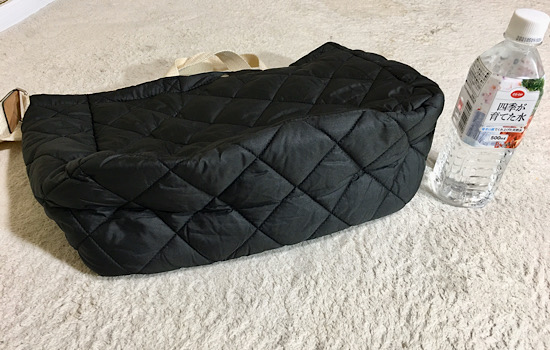 カジュアルになり過ぎるためブラックの大きいバッグは避けていましたが、キルティング素材のころんとしたモズバッグならアリです。