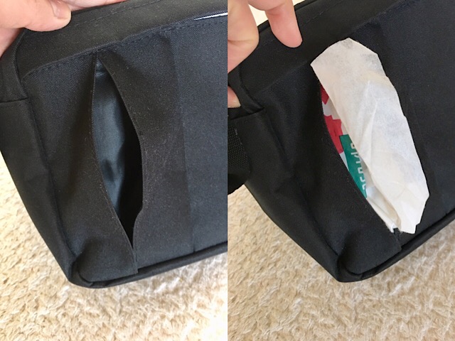 背面左側はティッシュを入れることができ、すぐに取り出せるので便利です^^