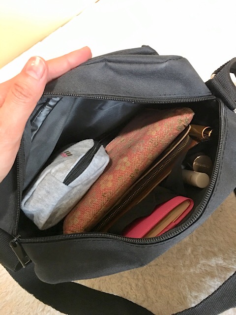 リュックや普通のななめ掛けバッグって、前のめりになるとずり落ちてくるんですよね(/ω\)