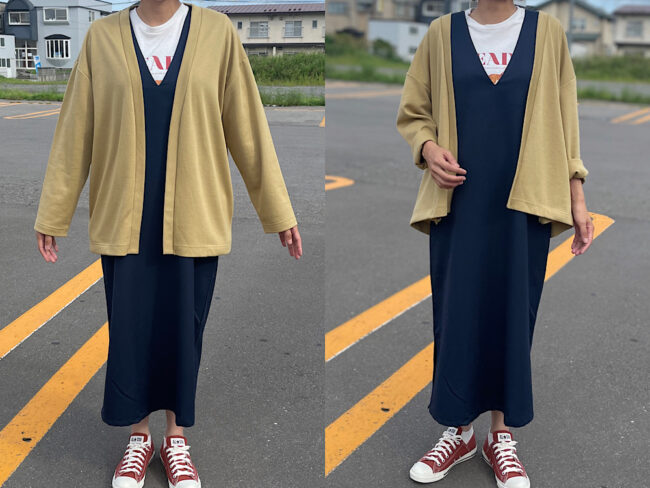 先ほどのカーディガンを例にした場合のアレンジは2つあります。