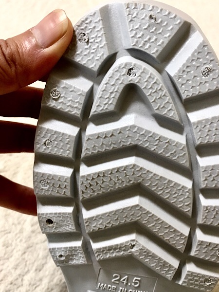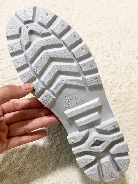 靴底には溝がしっかりあり水の上でも滑りにくいことから、釣り関係のSNSでも話題になっています↑