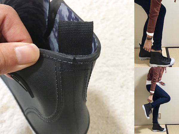 - 履き口後ろのループを持つと、紐を気にせず簡単に履ける