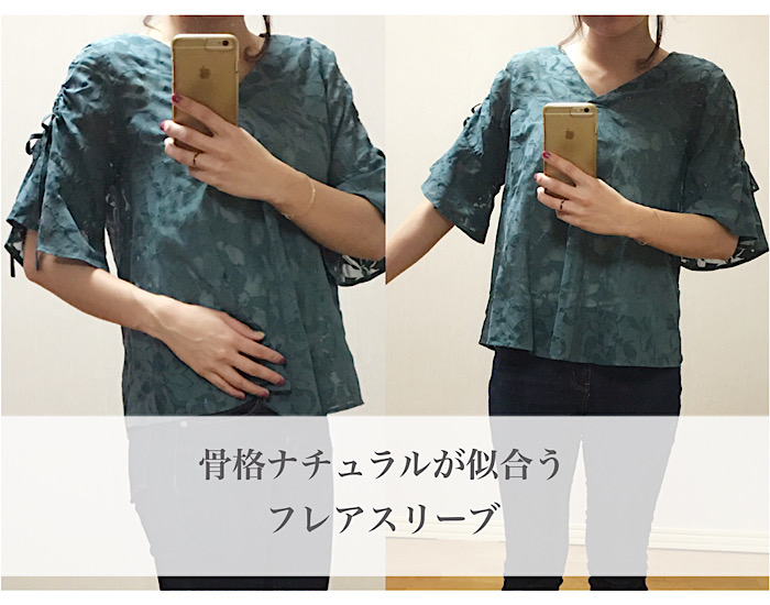 甘さのあるフレアスリーブは、ウェーブタイプさんだけが似合うと思われがち…。