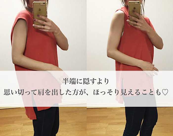 半端な袖丈で隠すよりは、ノースリーブで思い切って見せた方が