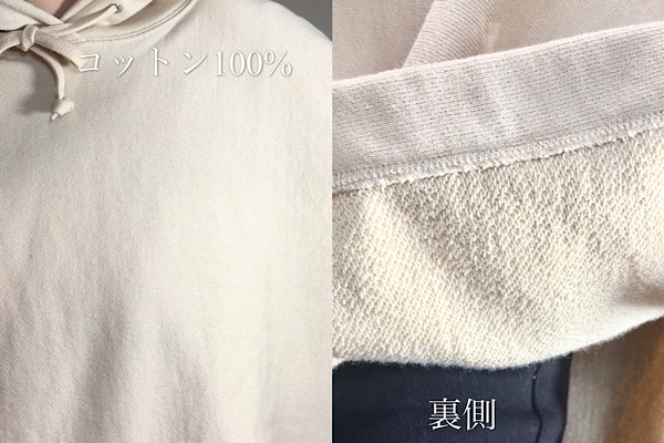 しかもフードの表と裏は生地が違う二重構造なので、フード部分が乾きずらいといった洗濯時のお悩みも軽減してくれますよ^^