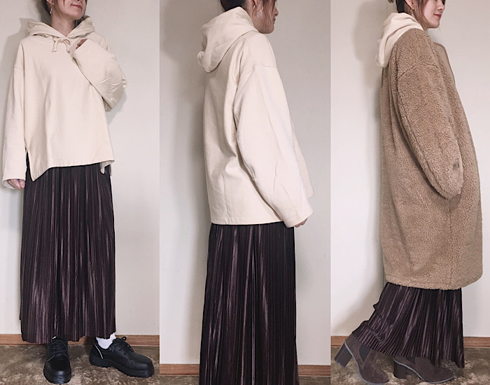 ユニクロパーカー×プリーツスカート